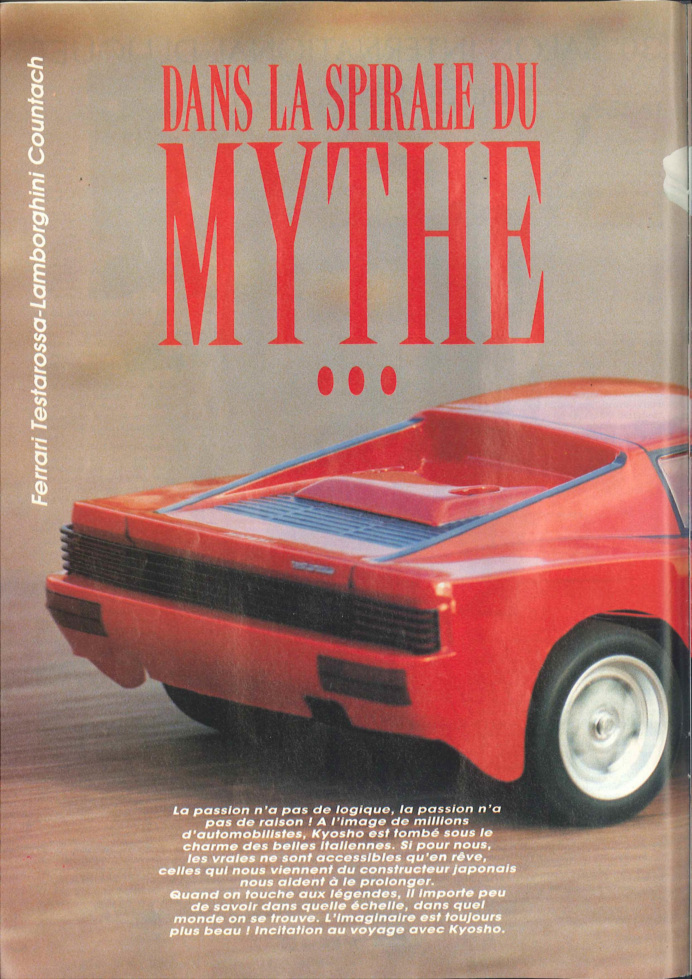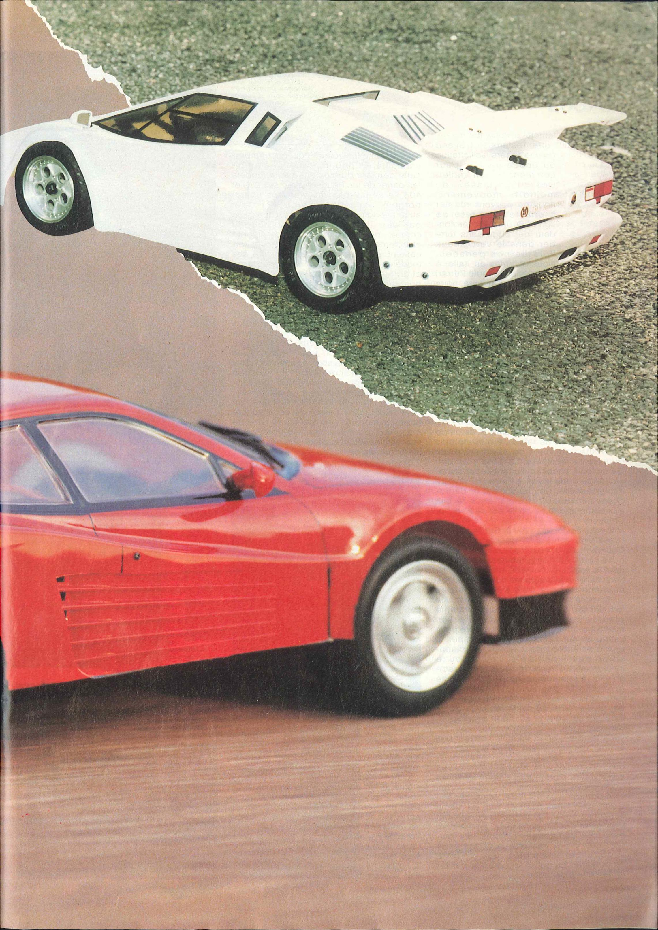 Essai Ferrari Testarossa / Lamborghini Countach (Essai voiture) J. Rosas Piste 1/10 Electrique Kyosho (Auto 8 n°63 Jan/1991)