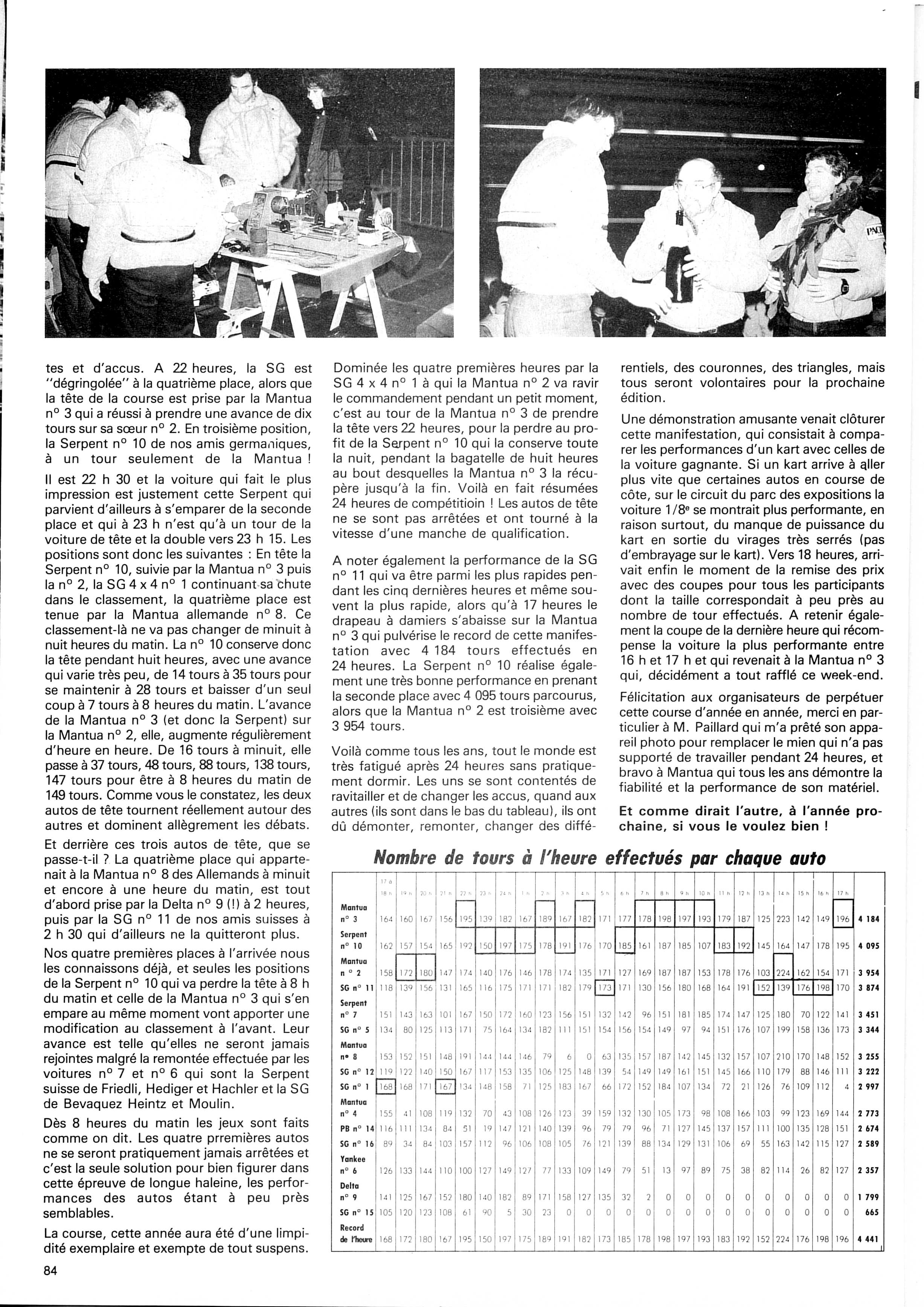 24 heures de Besancon (Course) Denis Sallé Piste 1/8 Thermique (Auto RCM n°40 Jan/1985)