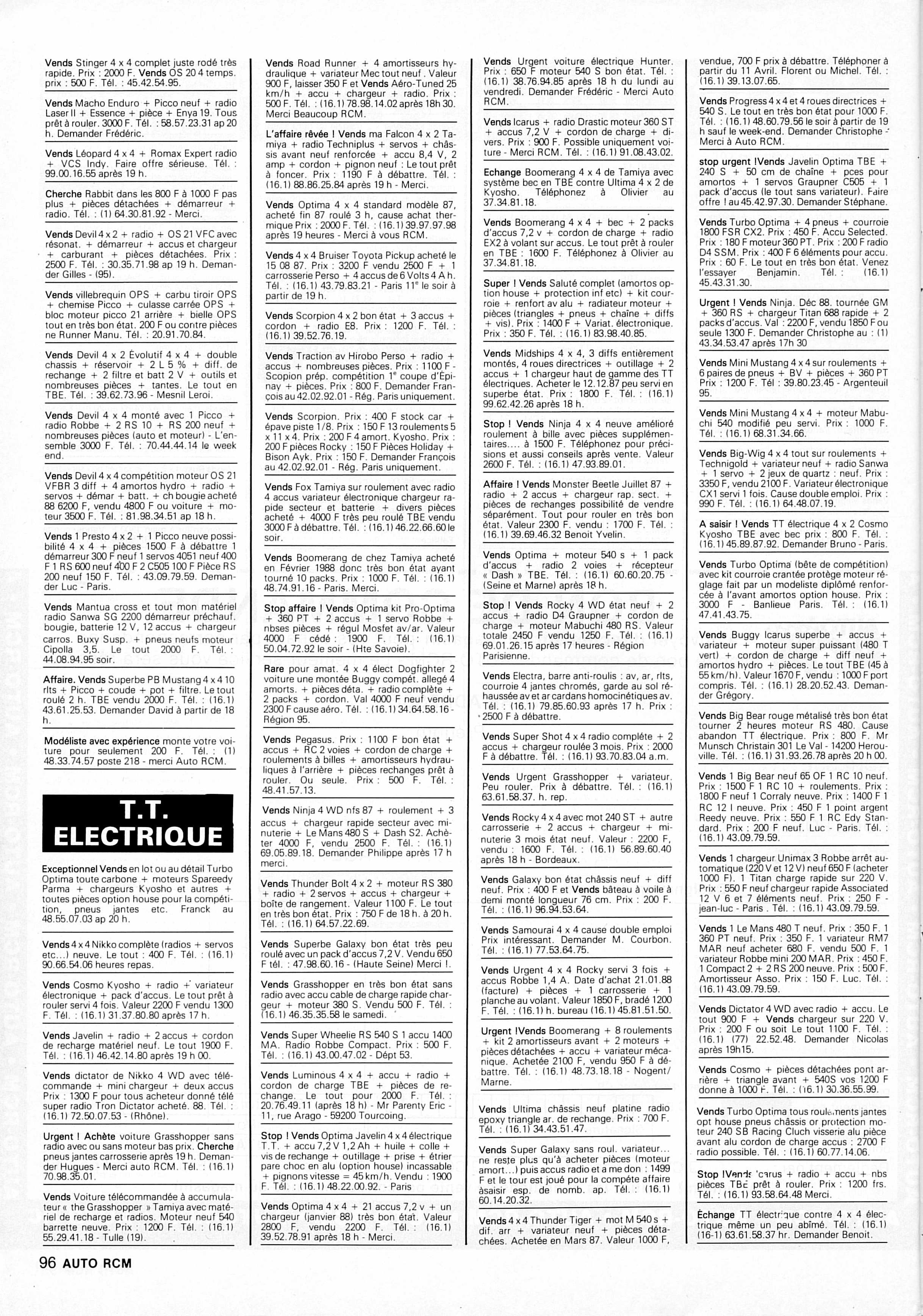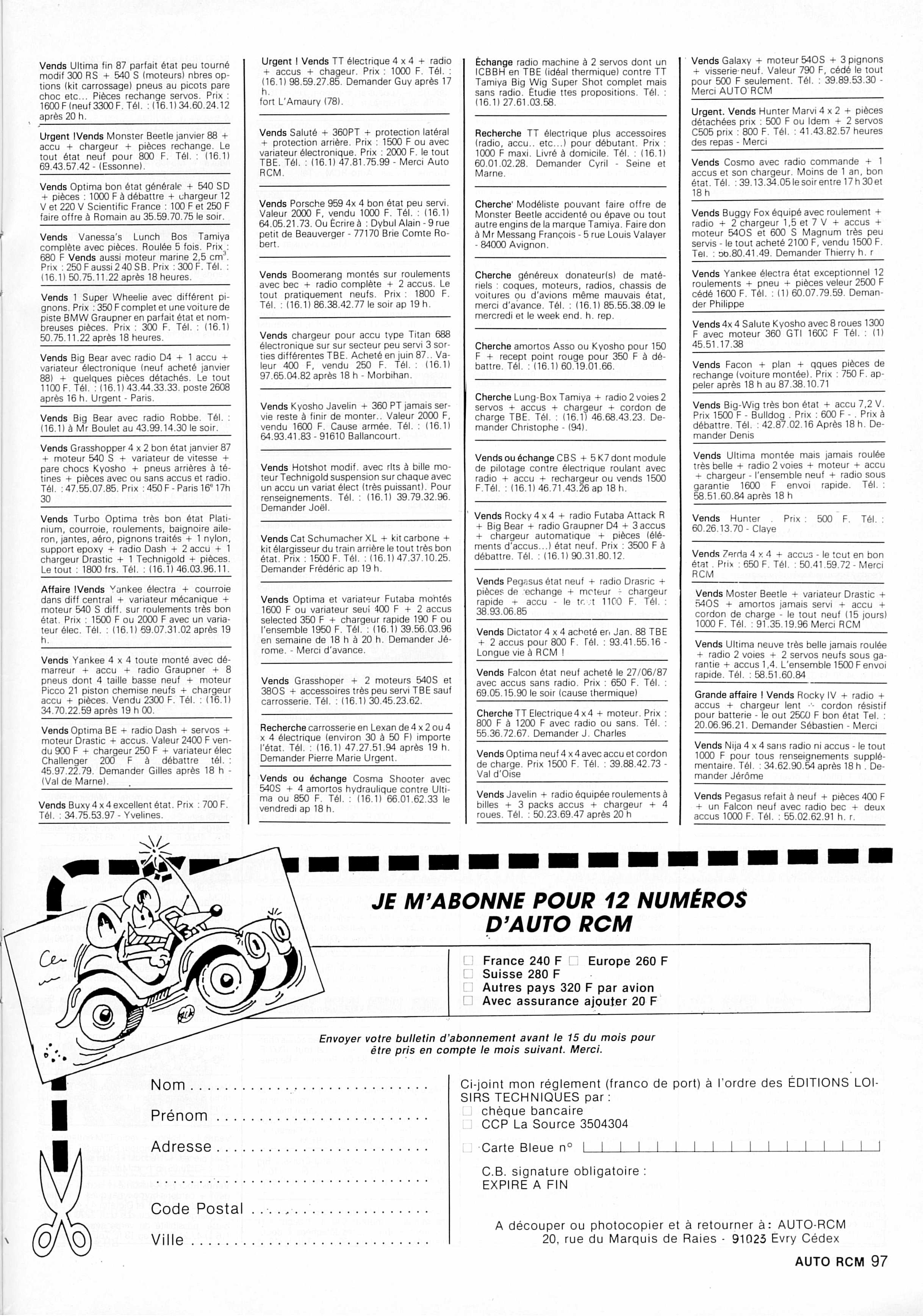 Petites annonces (Petite Annonce) (Auto RCM n°79 Avr/1988)